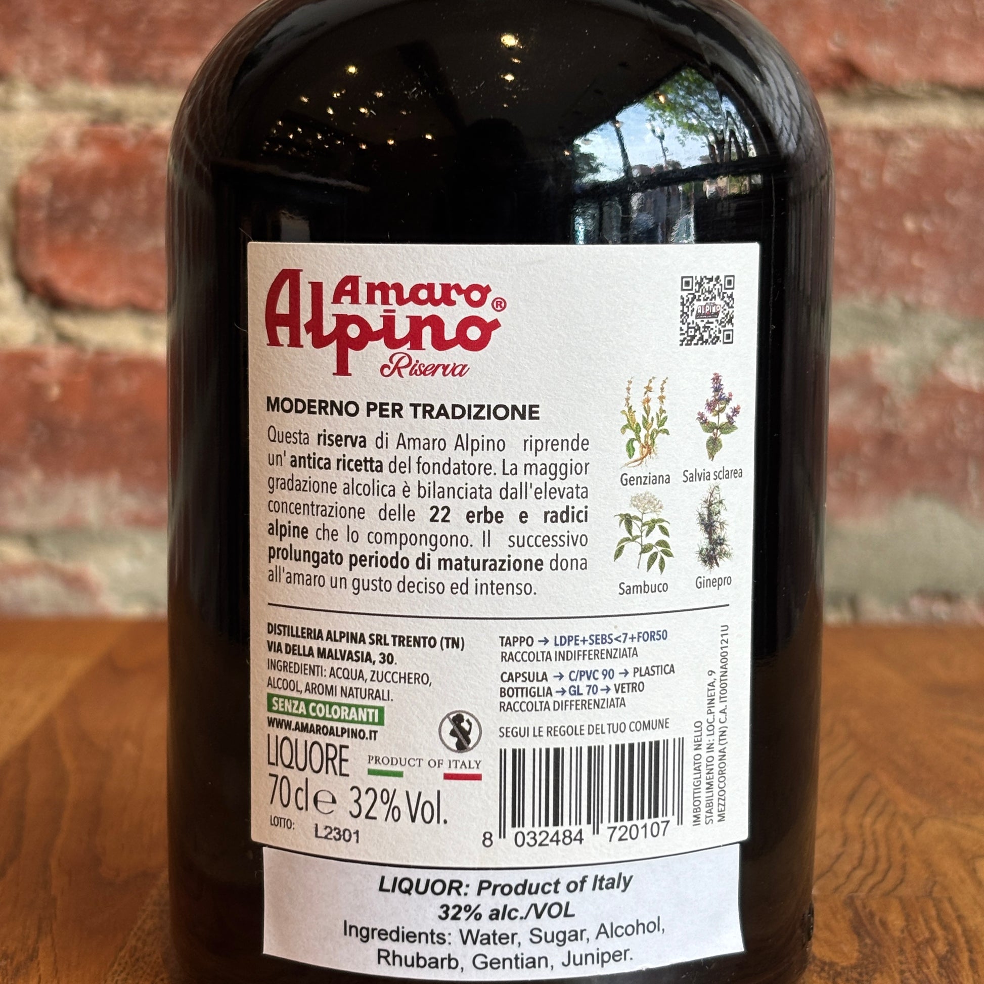 Traditional Amaro. Alpina's classic Amaro Alpino. Mountain herbs and roots with a bitter and sweet balance. Great for a beginner to Amaro.