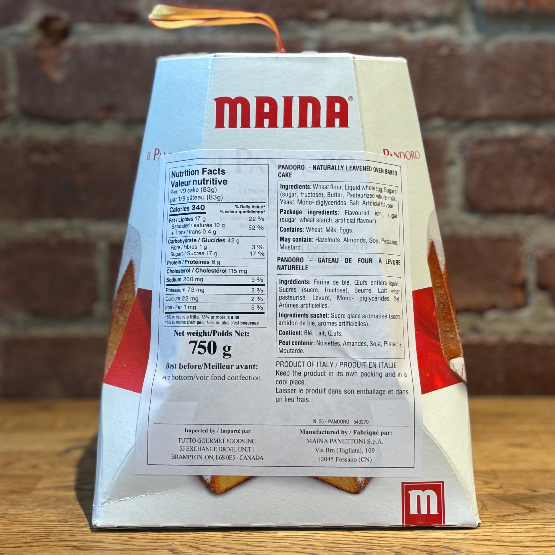 Maina Il Pandoro is a traditional Italian cake with a soft, fluffy texture and delicate flavor. A simple yet elegant treat for any celebration.
