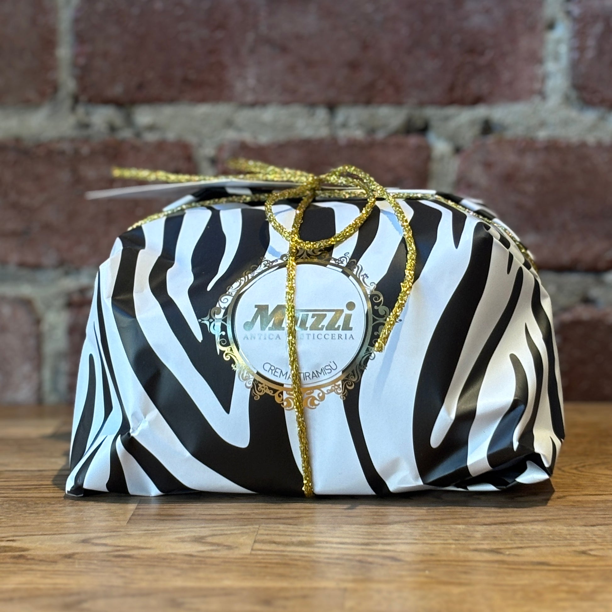 Muzzi’s Tiramisu Cream panettone combines two Italian classic sweet desserts in one! The buttery texture of this traditional panettone cake is flavoured with rich bittersweet coffee. Filled with light cream, a bite of this panettone tastes like an indulgent Tiramisu.
