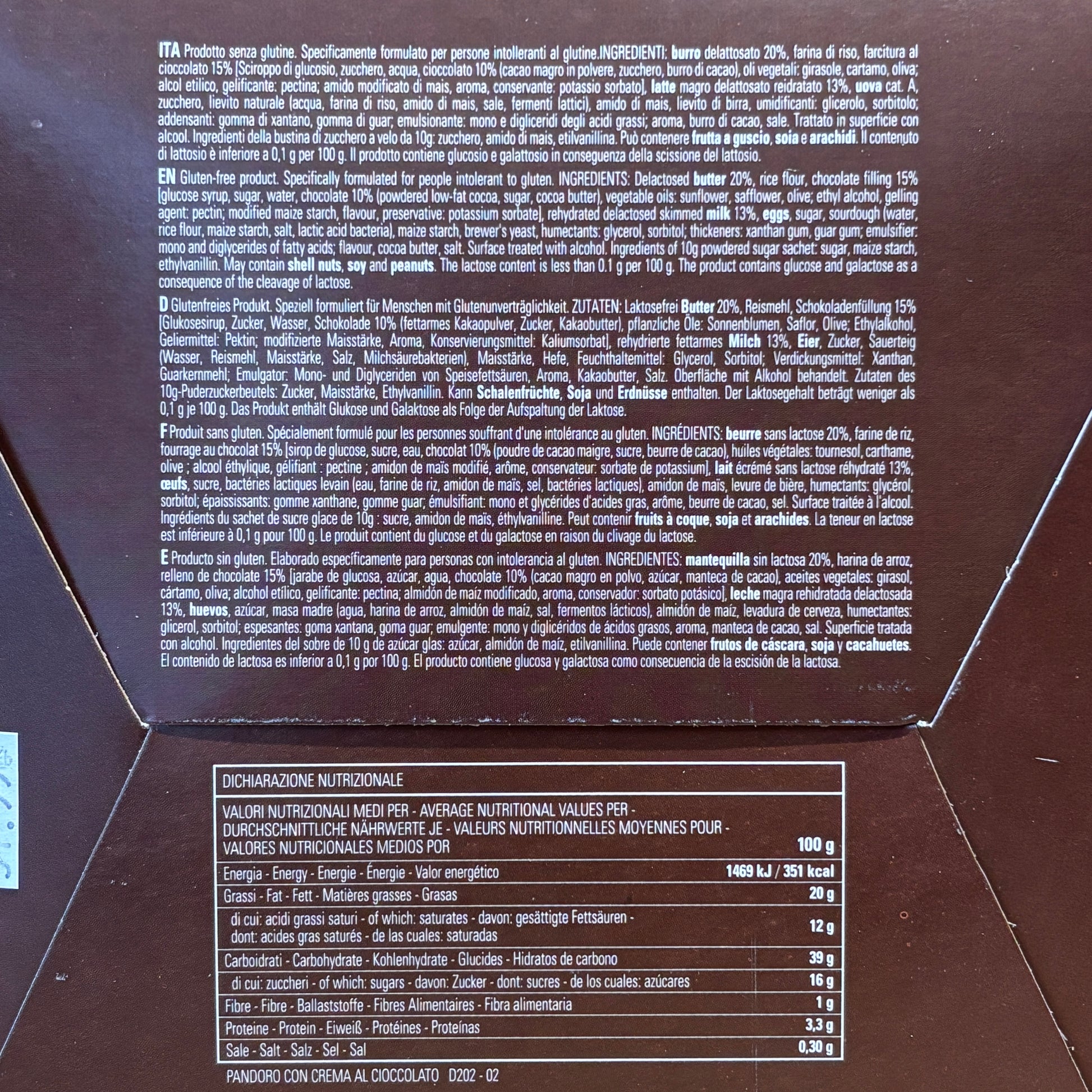 Add a delicious chocolate cream to our gluten-free and lactose-free Pandoro and... voilà! Your sweet-toothed friends will be there. 16 hours of leavening for an extra-soft result.