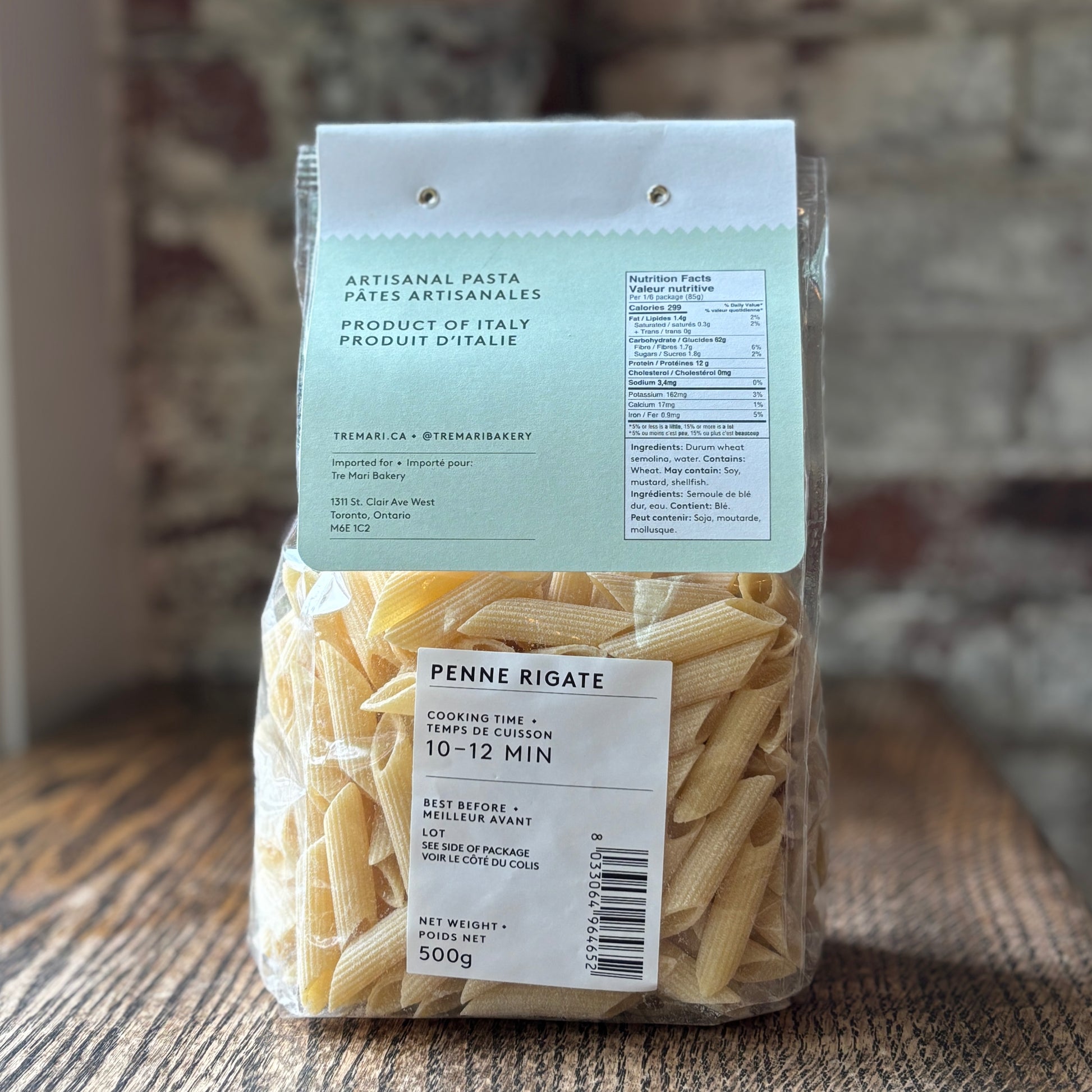 Indulge in the authentic taste of Italy with Tre Mari Penne Rigate! Made in Italy, this high-quality pasta will transport your taste buds to the Italian countryside. Experience the difference of true Italian pasta with Tre Mari.