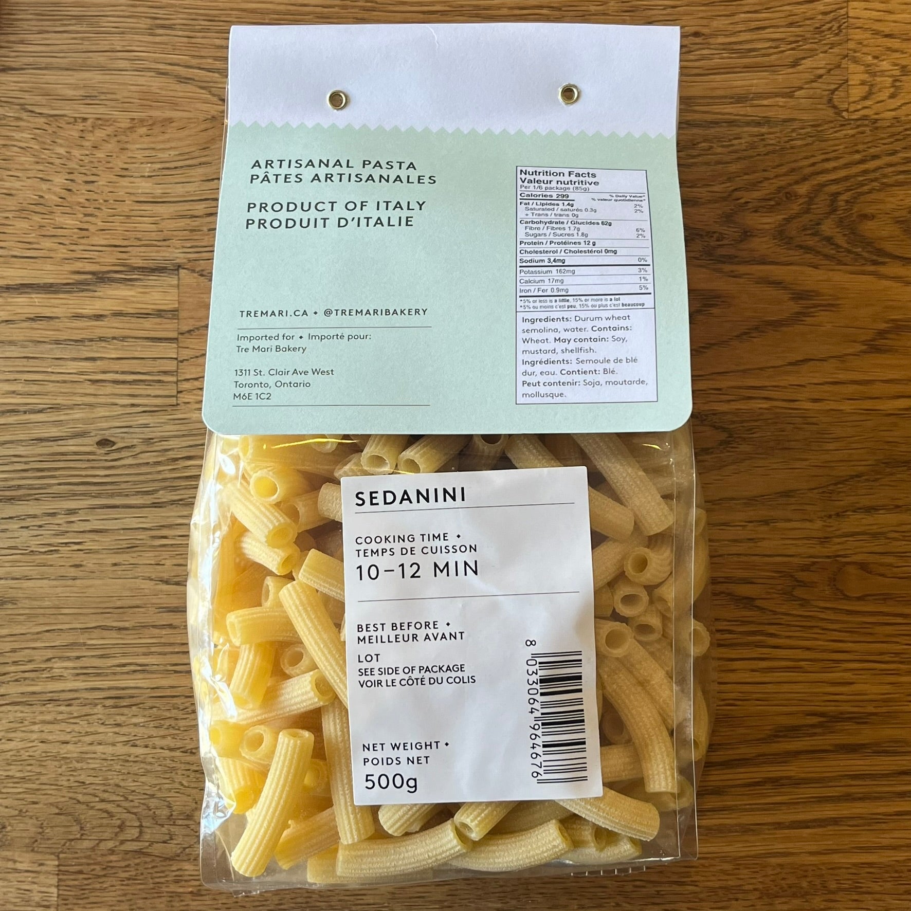 Indulge in the authentic taste of Italy with Tre Mari Sedanini! Made in Italy, this high-quality pasta will transport your taste buds to the Italian countryside. Experience the difference of true Italian pasta with Tre Mari.