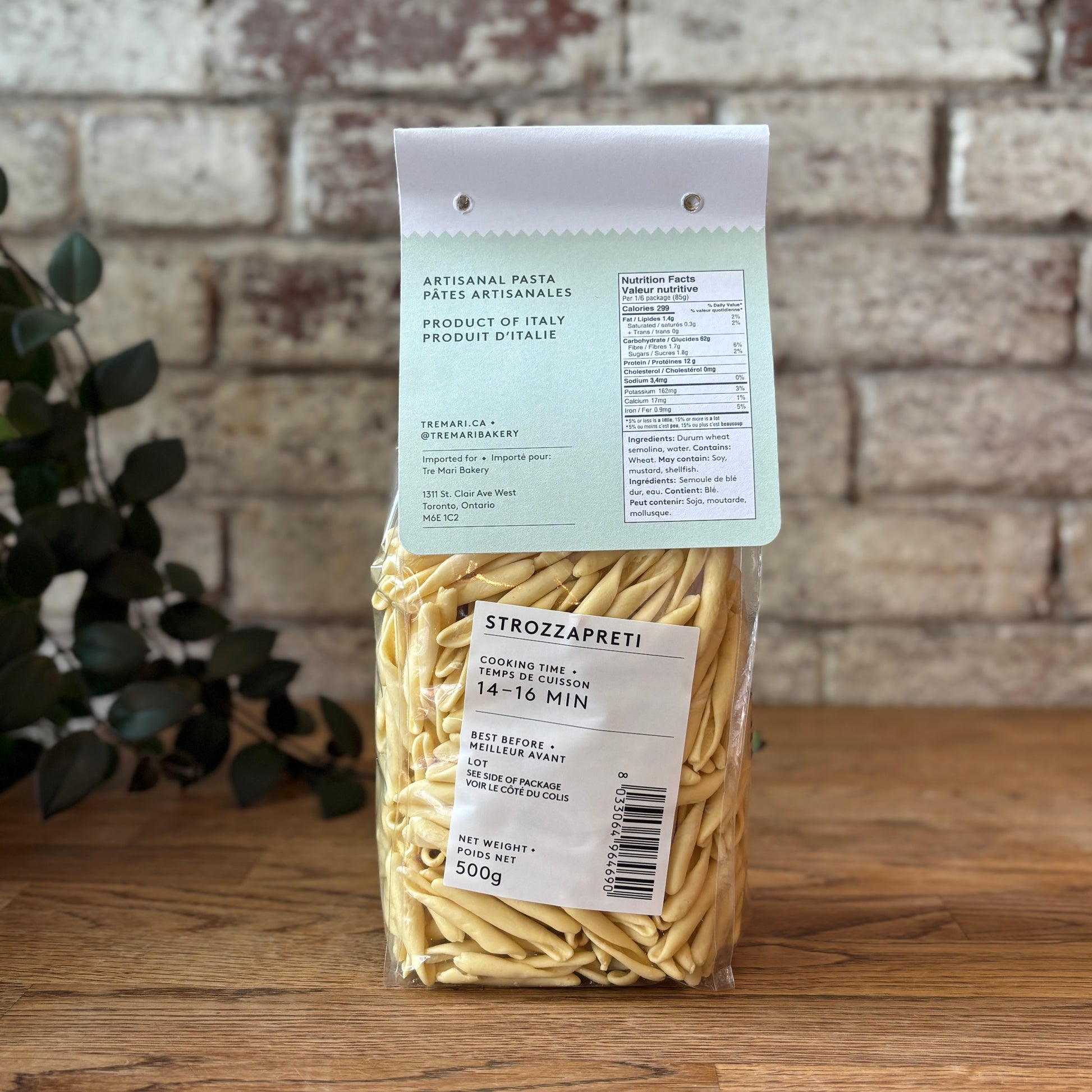Indulge in the authentic taste of Italy with Tre Mari Strozzapreti! Made in Italy, this high-quality pasta will transport your taste buds to the Italian countryside. Experience the difference of true Italian pasta with Tre Mari.