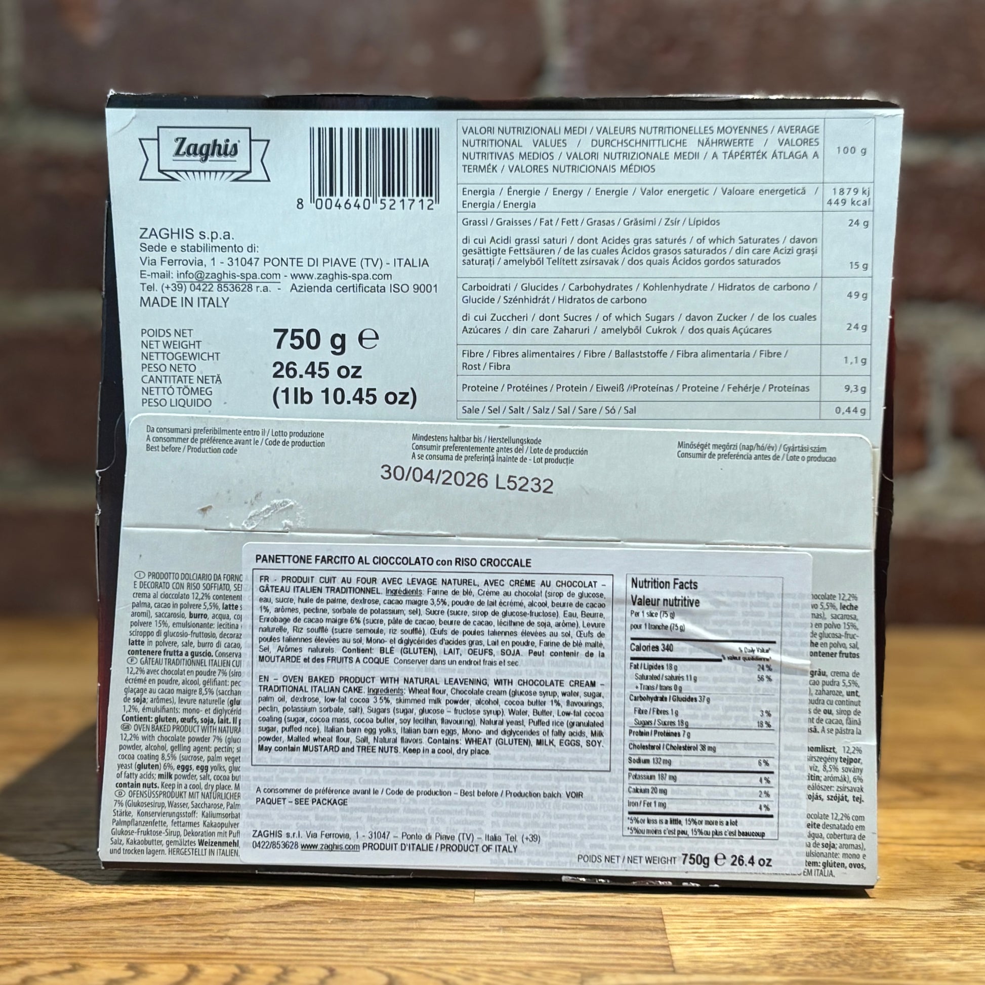 Zachis Panettone Cioccolato combines the light texture of traditional panettone with the rich taste of chocolate. A festive favorite for chocolate lovers.